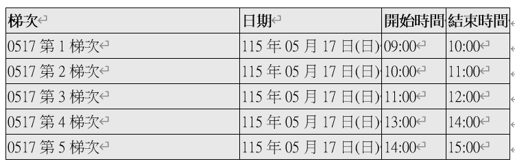 面試日期:115年5月17日(星期日)