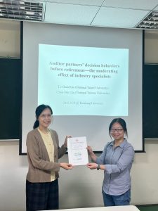 115.04.10.台北大學會計學系郭利君副教授「Auditor partners’ decision behaviors before retirement—the moderating effect of industry specialists」