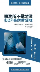 講 題:事務所不是地獄,但也不是你想的那樣-給淡江會計人的職場生存真心話分享